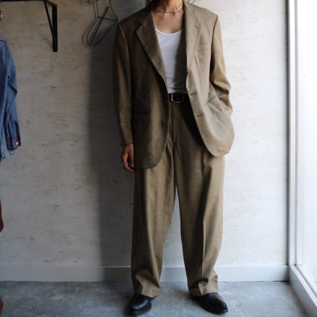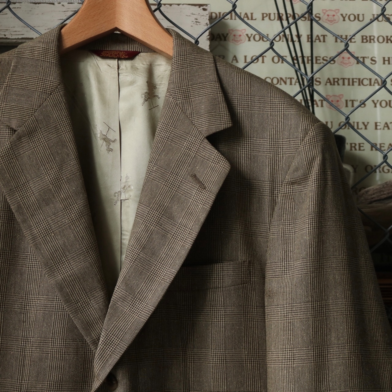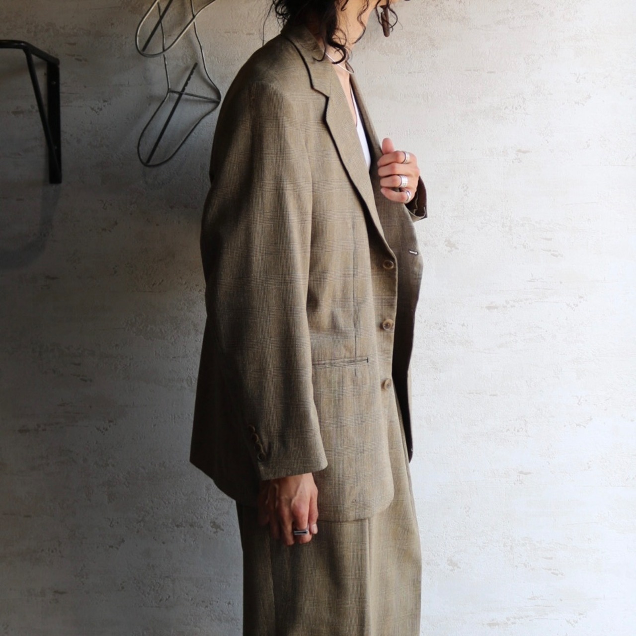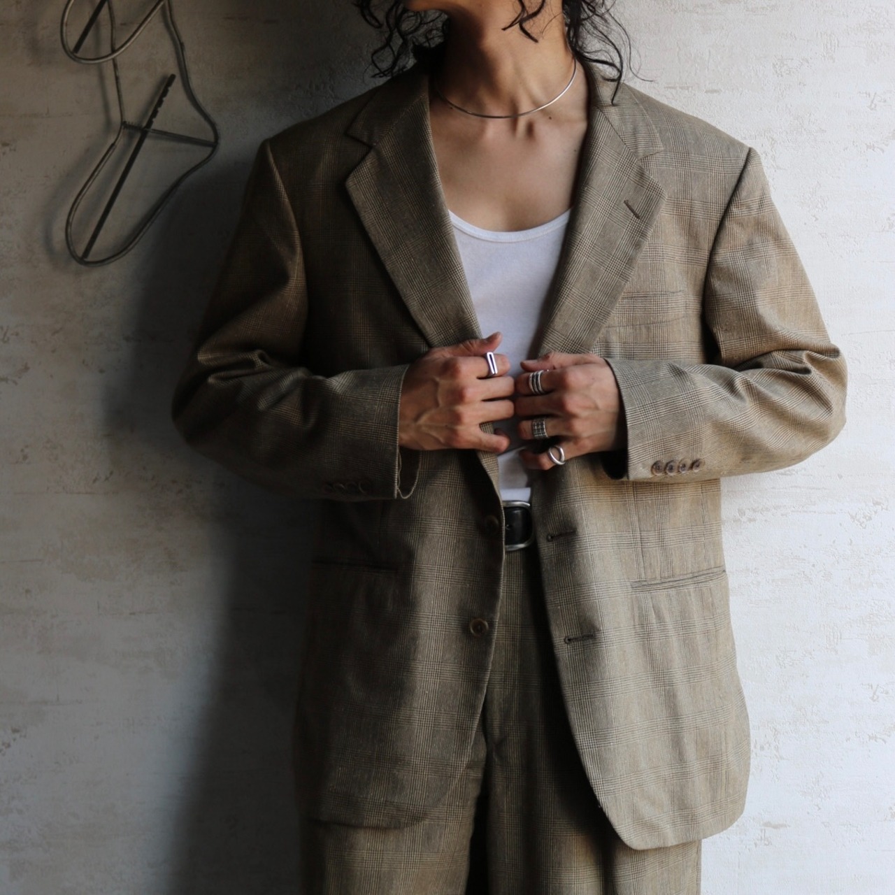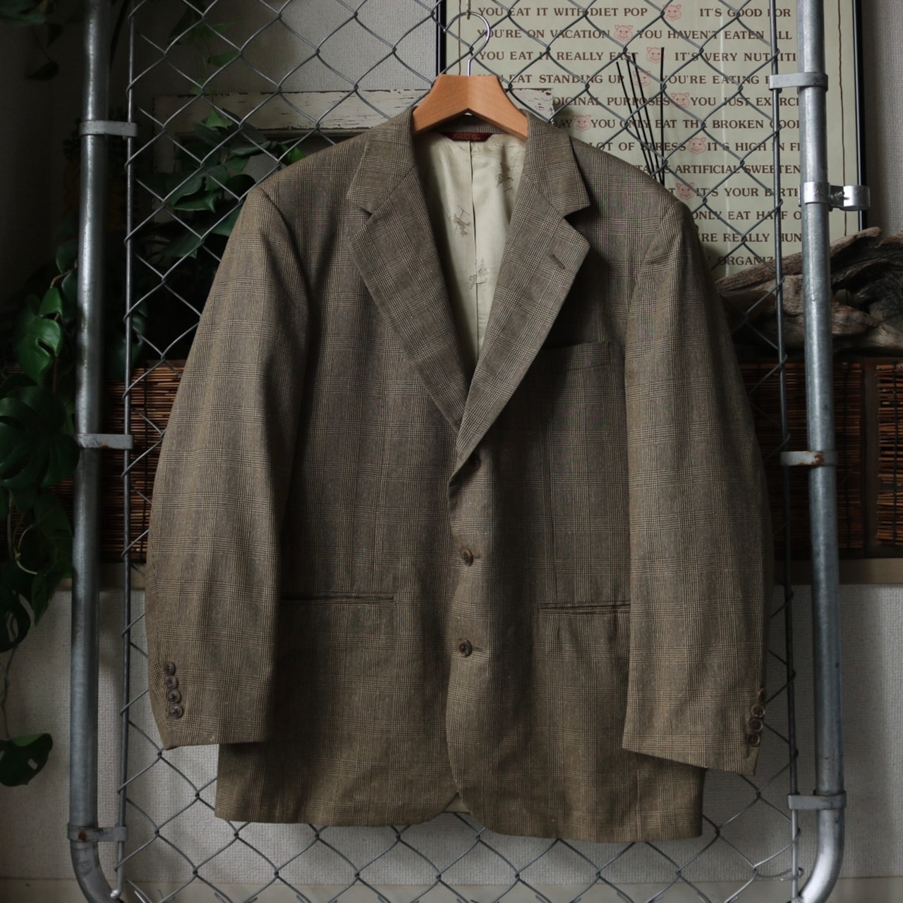 90's USA "BESPOKE" glen check 2 piece setup suit