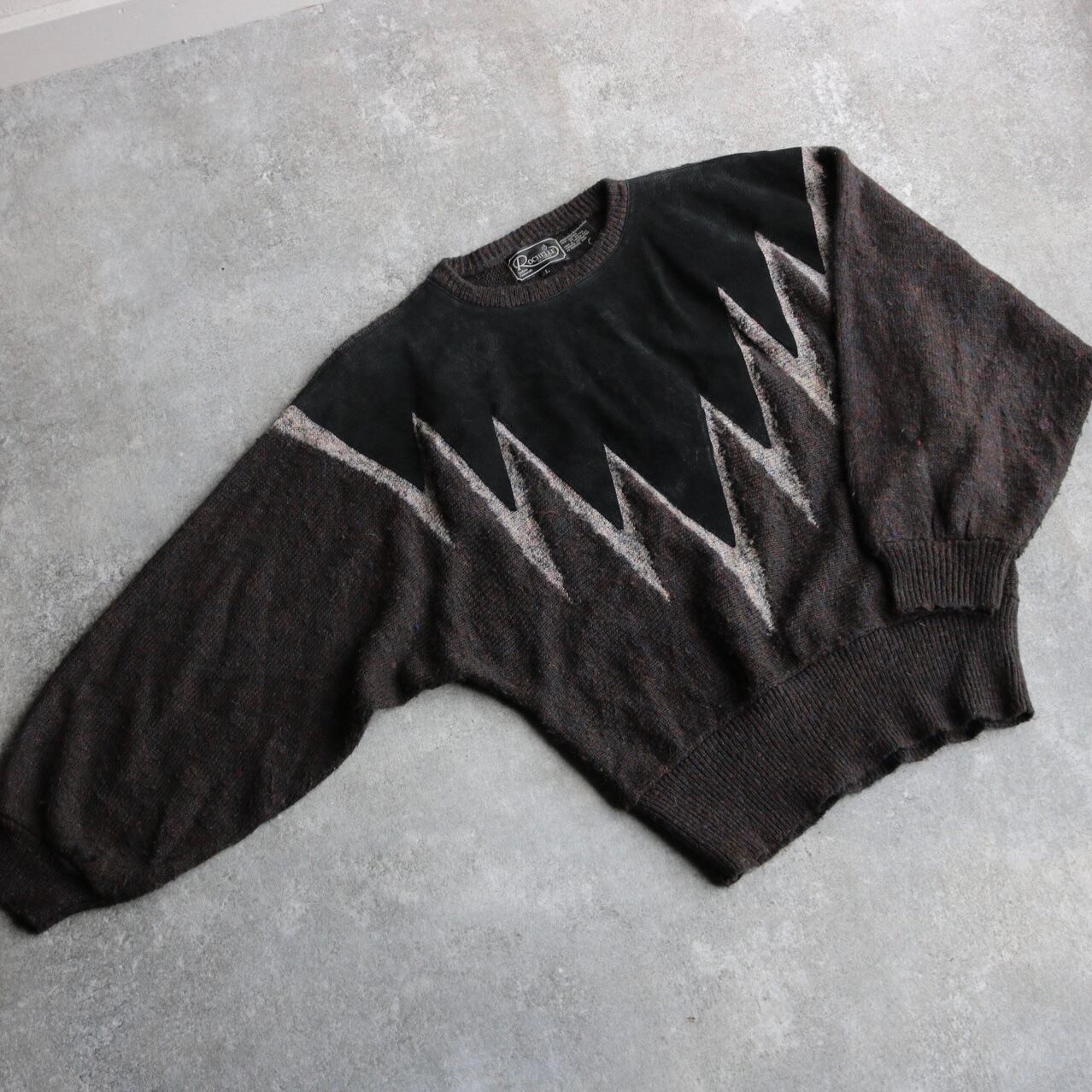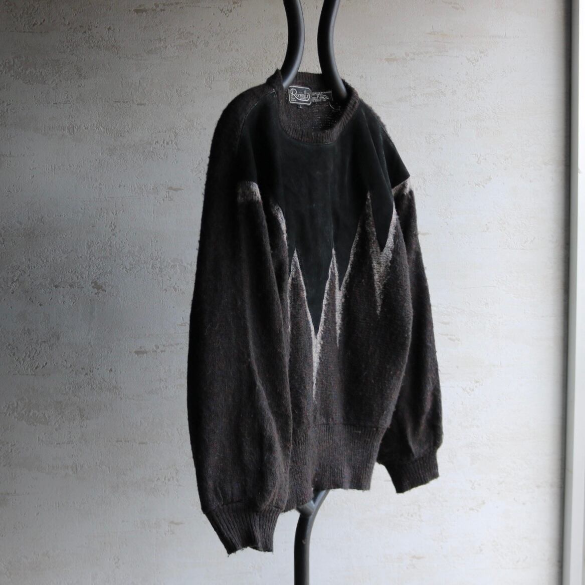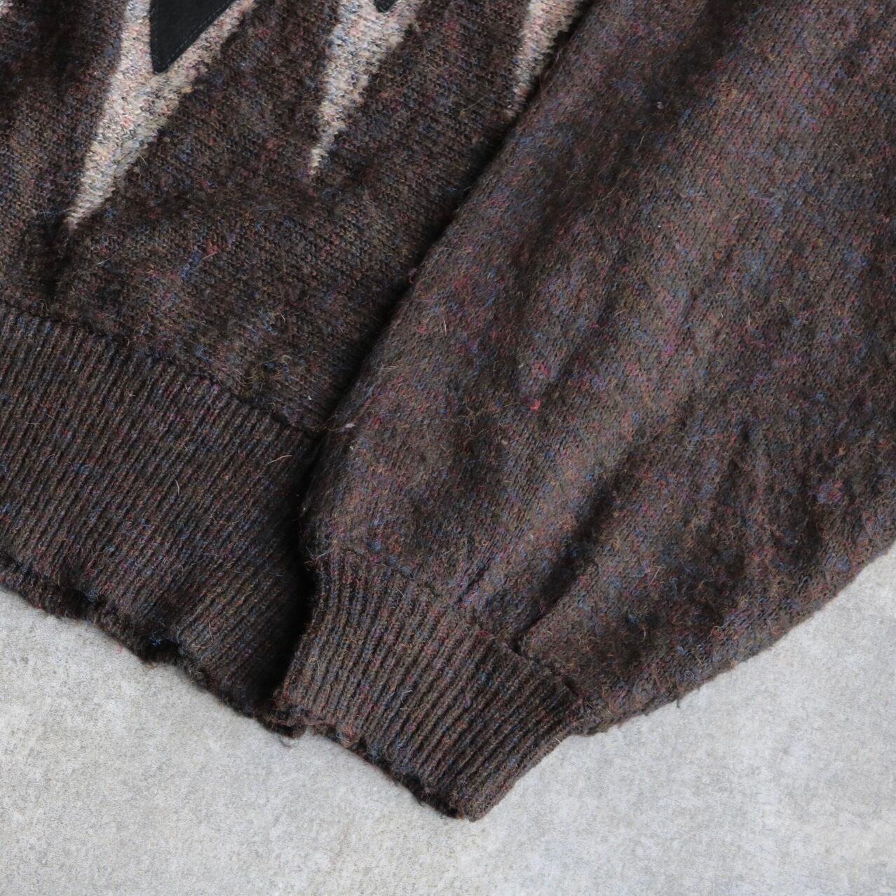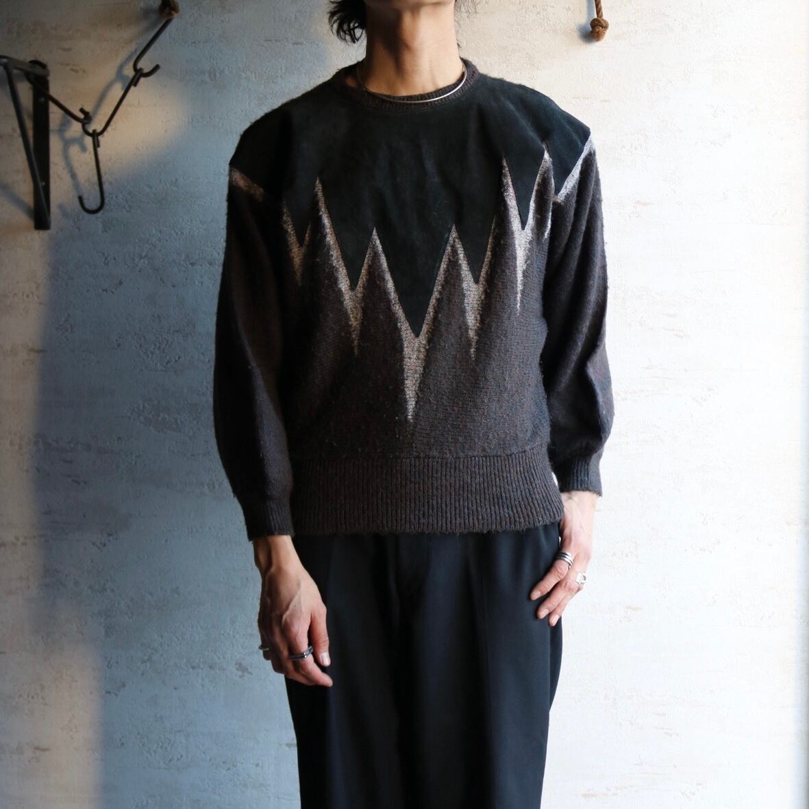 80's〜 dolman sleeve leather combination knit sweater