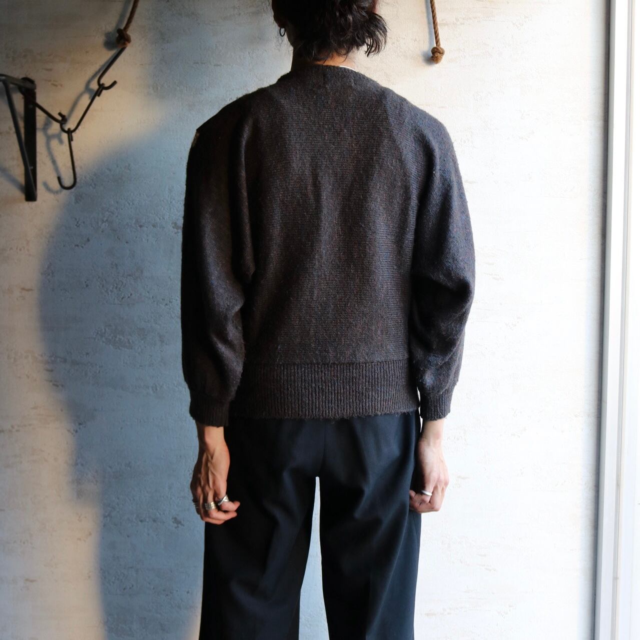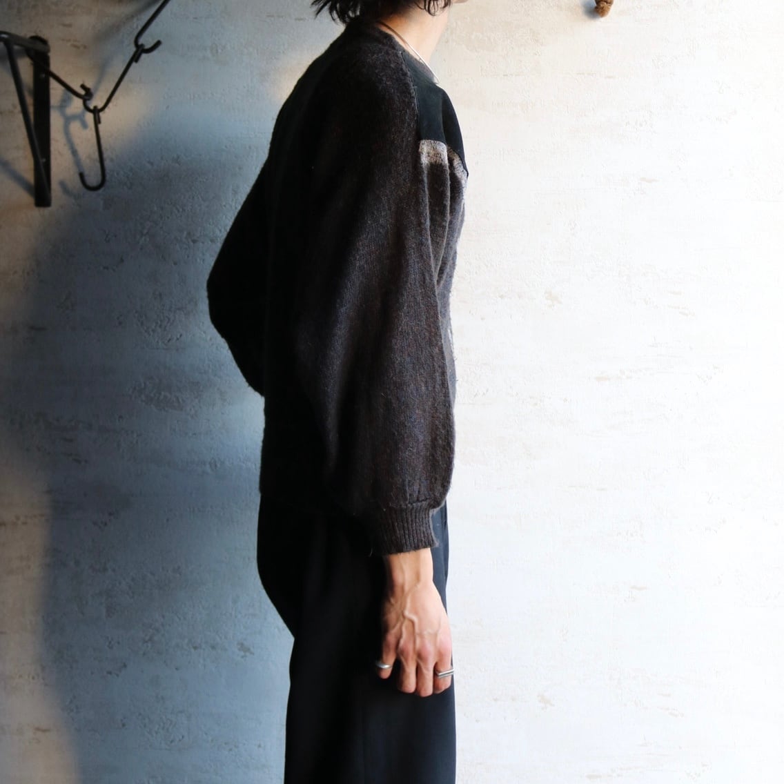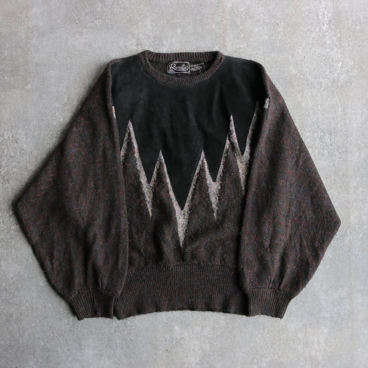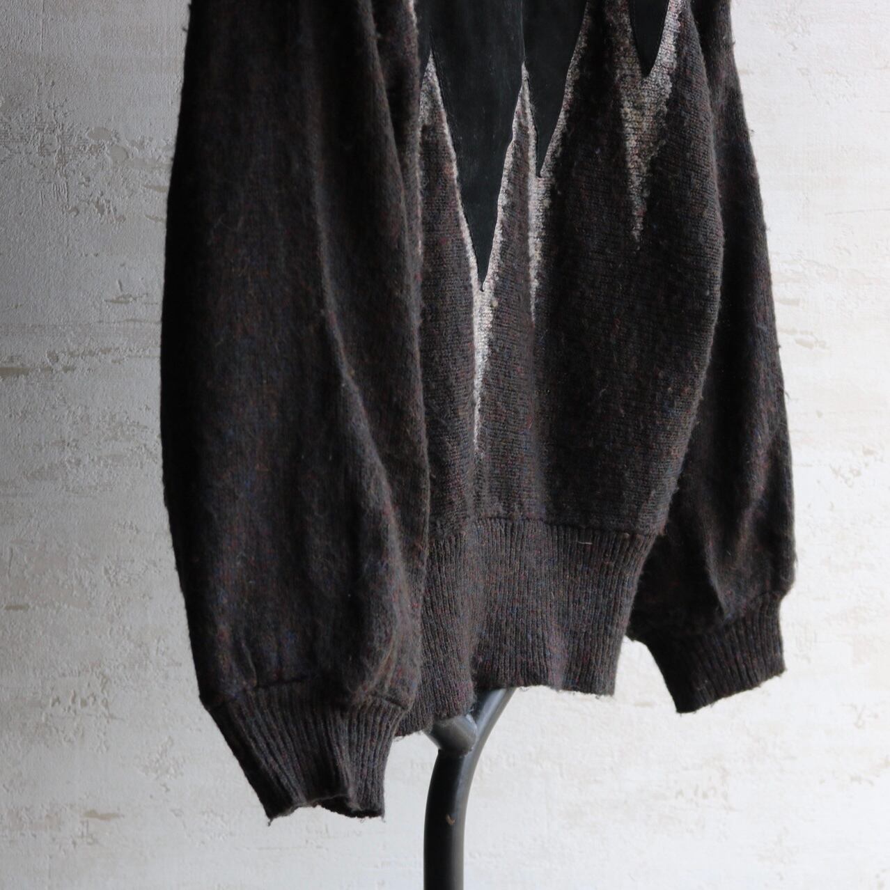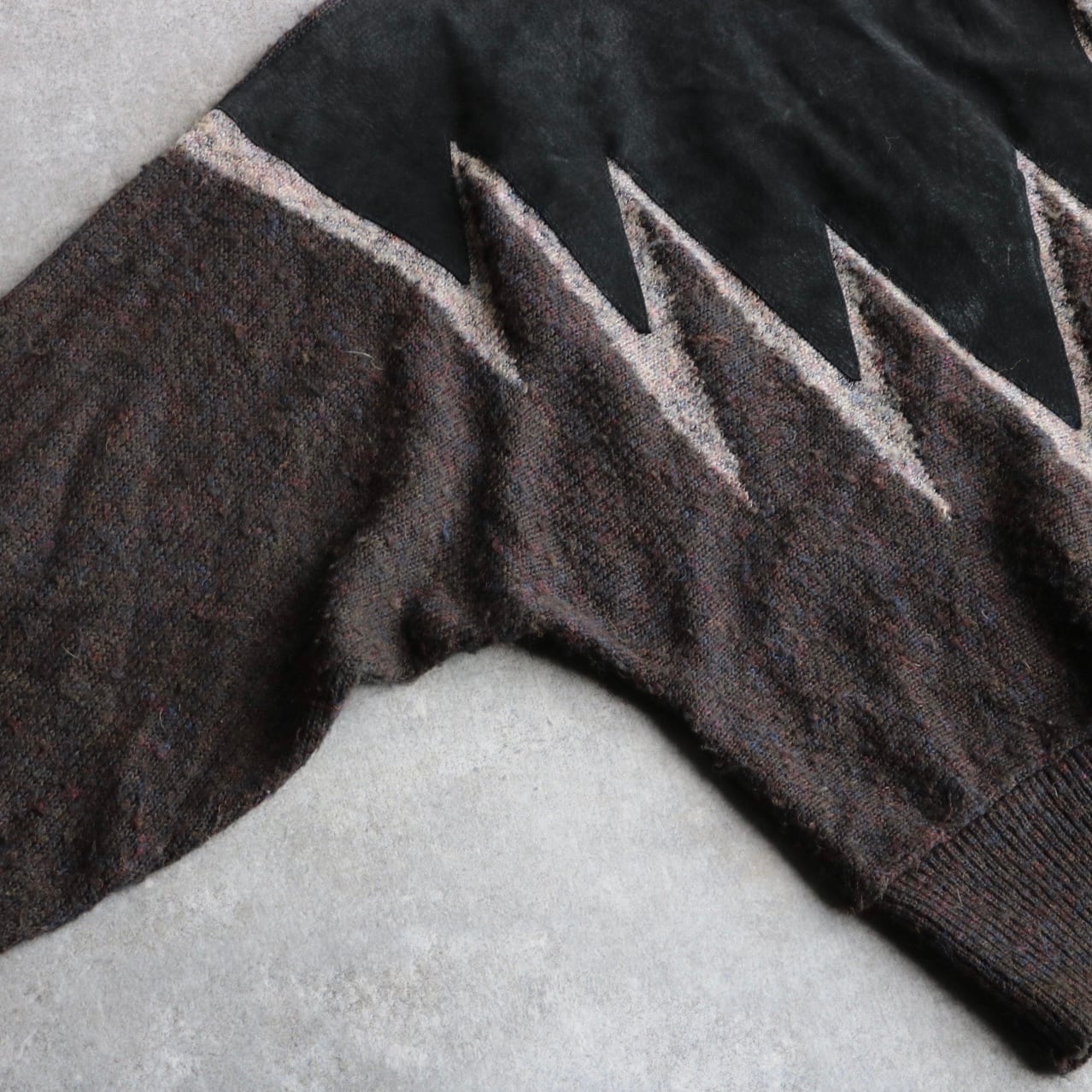 80's〜 dolman sleeve leather combination knit sweater