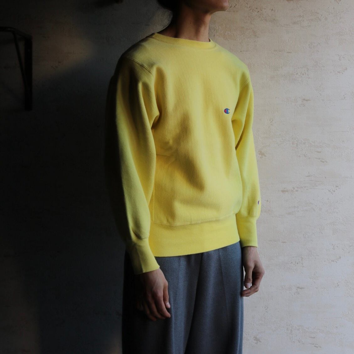 90's "champion" reverse weave yellow sweat shirt