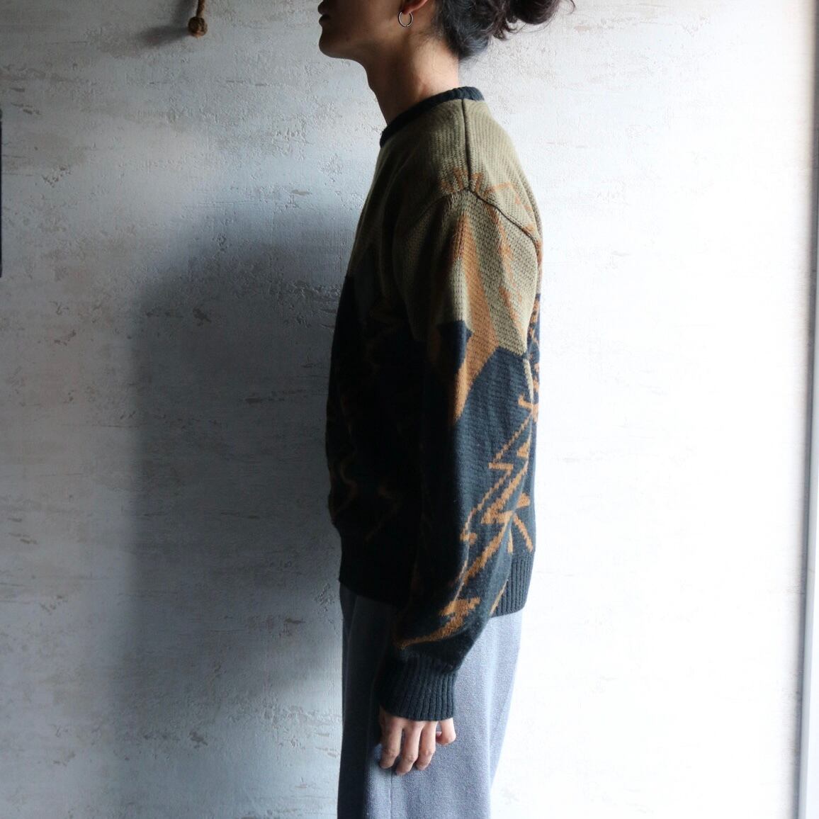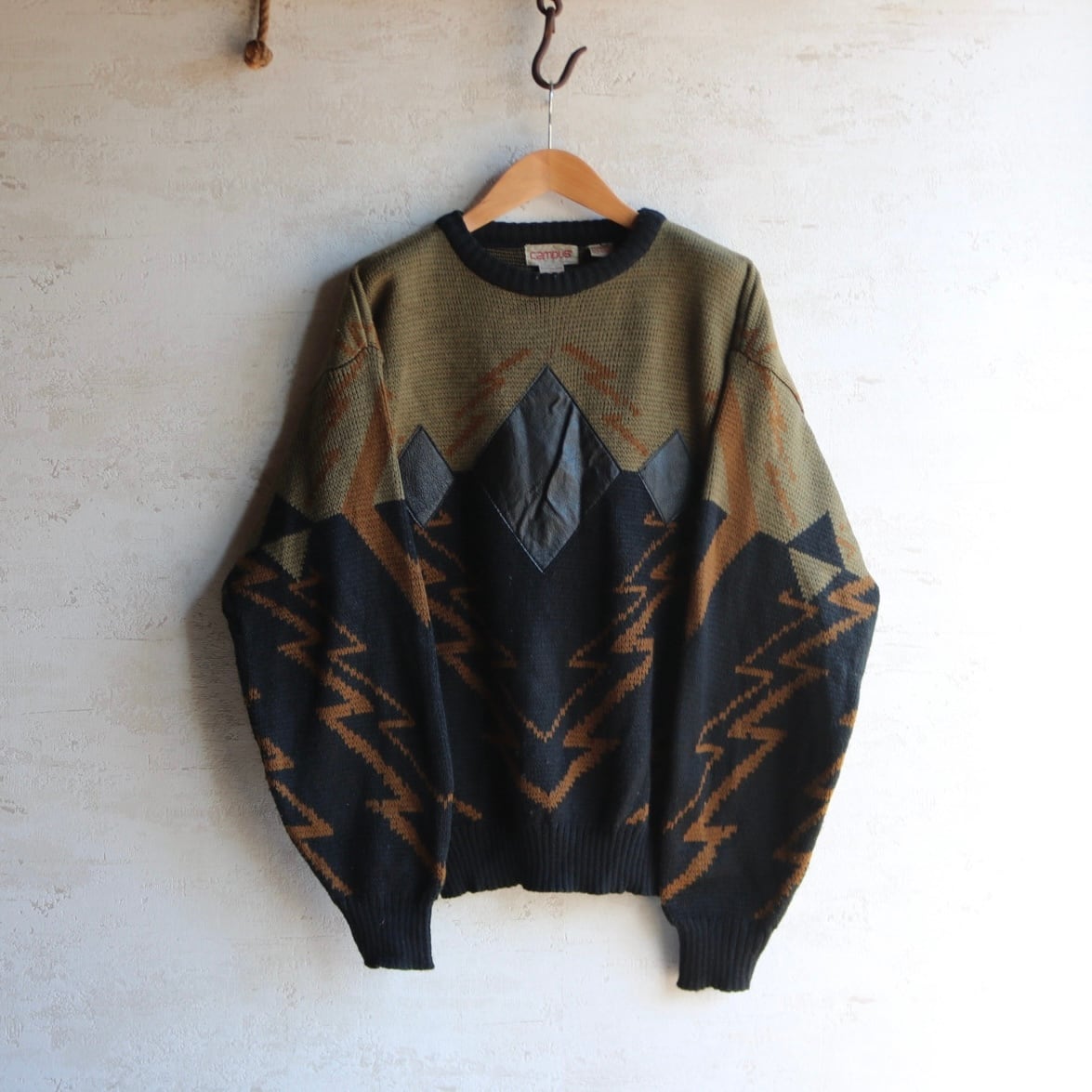 "Campus" leather combination knit sweater