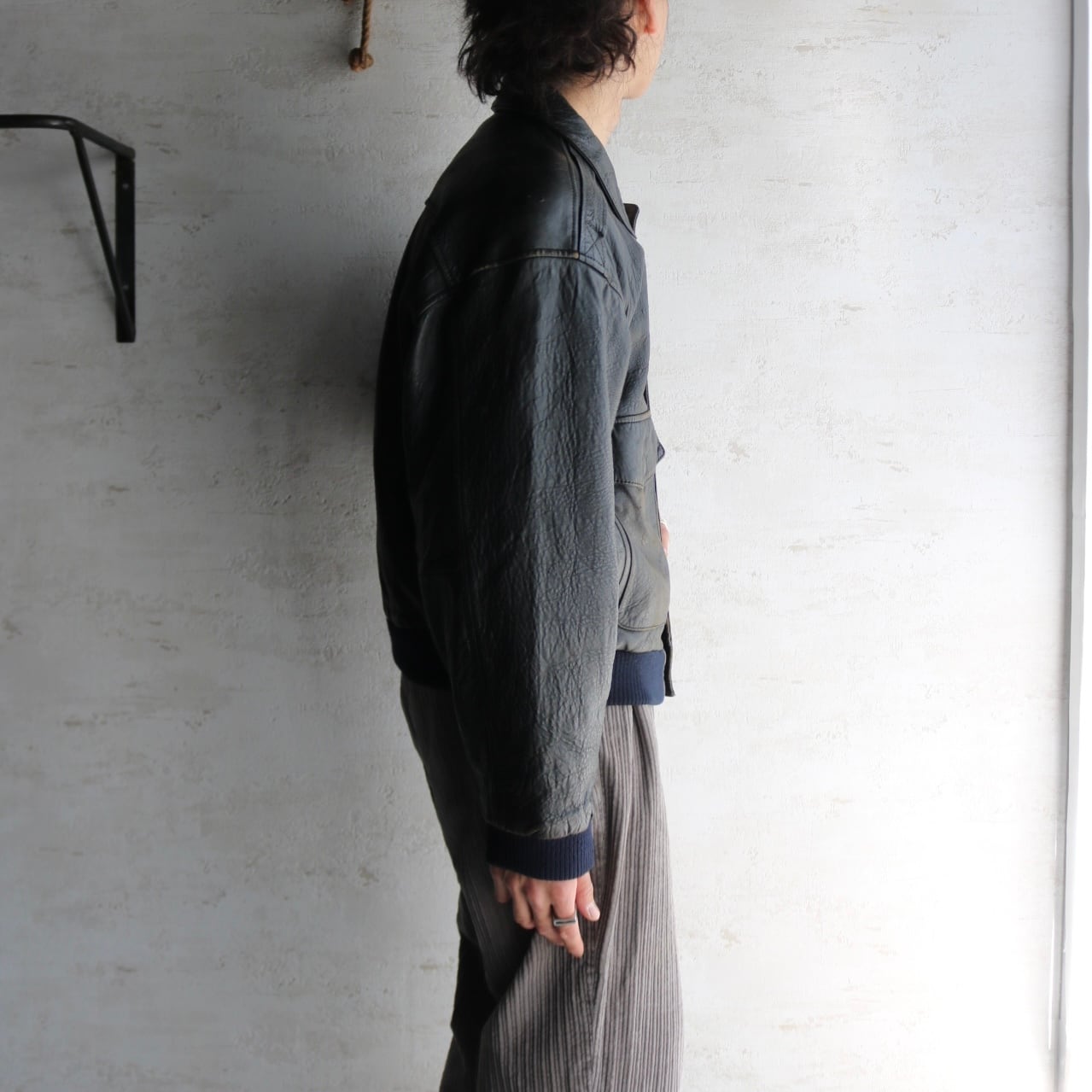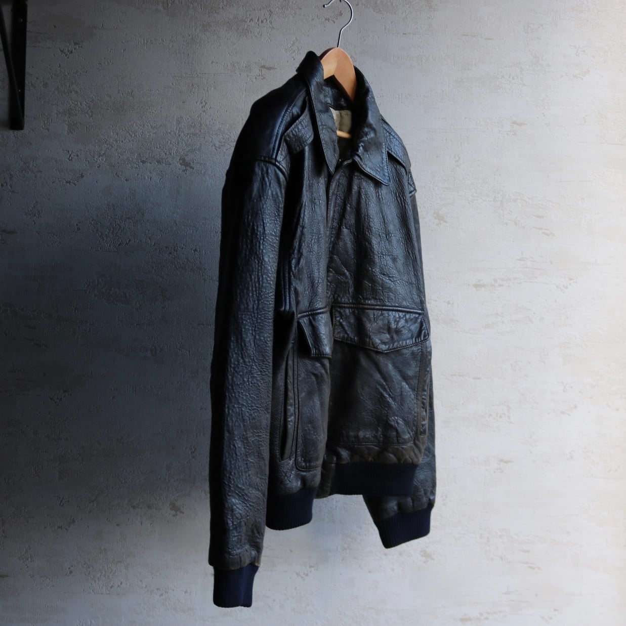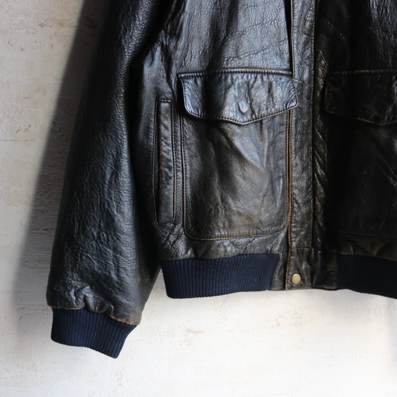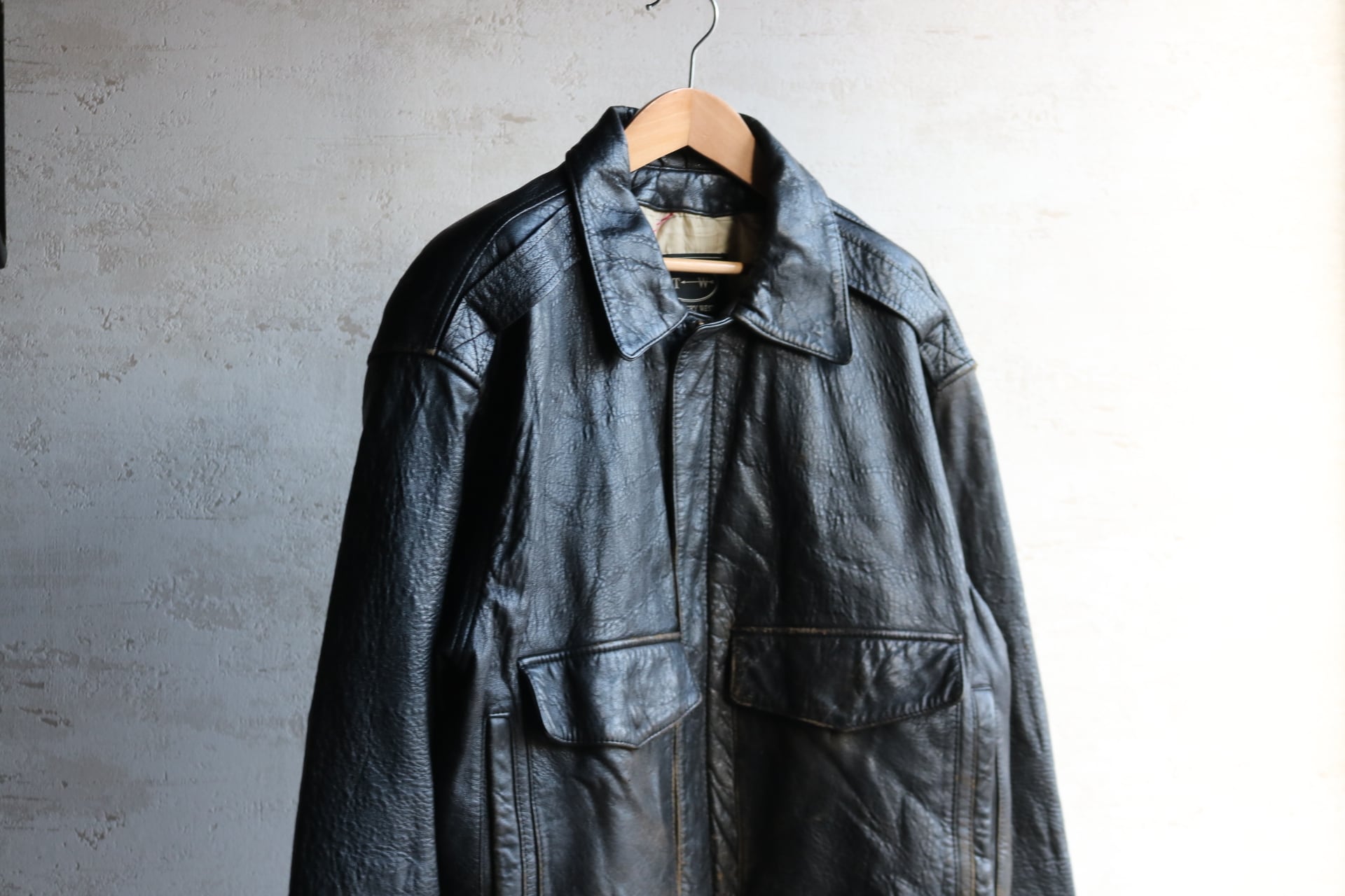 90's "TANNERY WEST" type A-2 black leather jacket