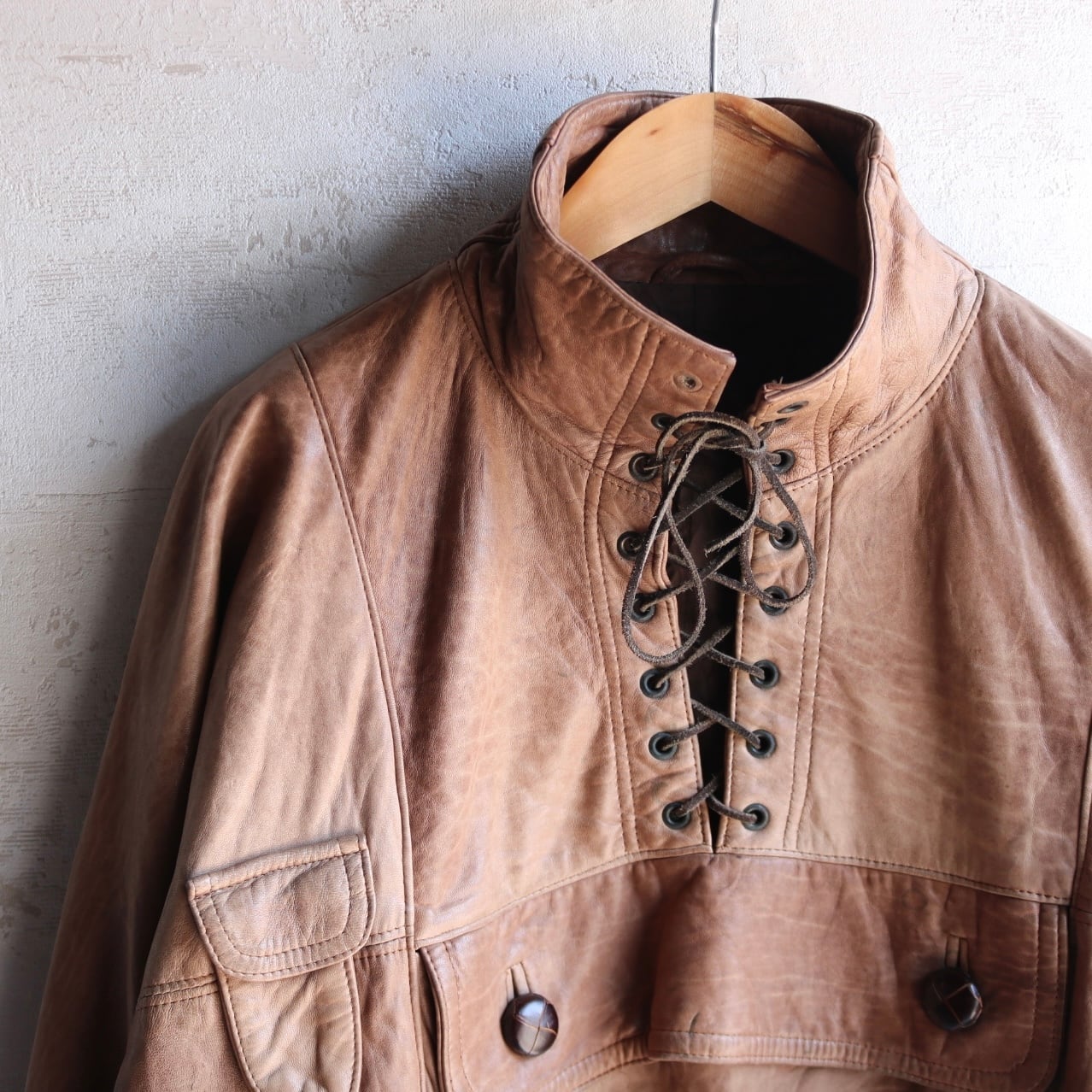 80's〜 lace up leather pullover jacket