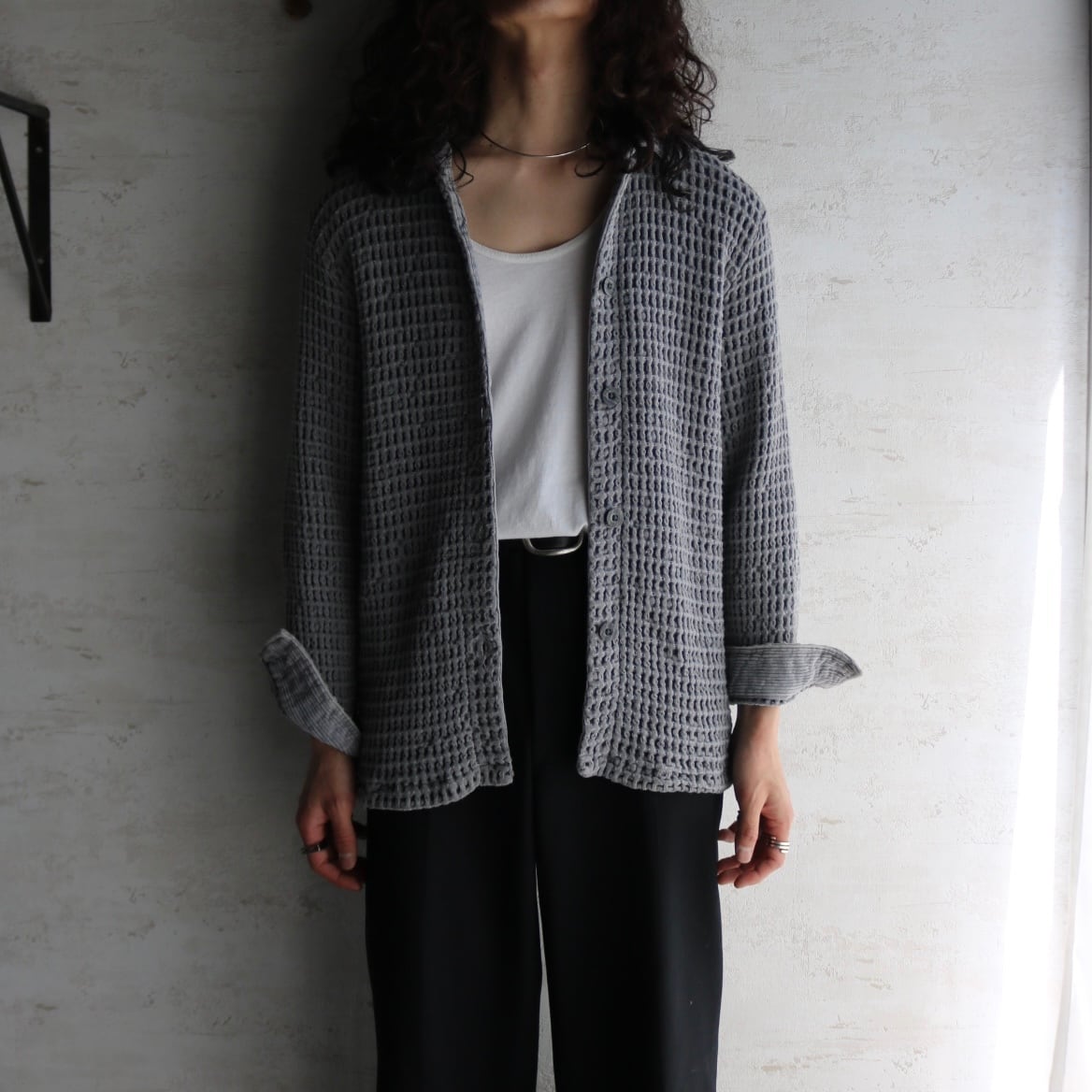 old cotton waffle shirt jacket