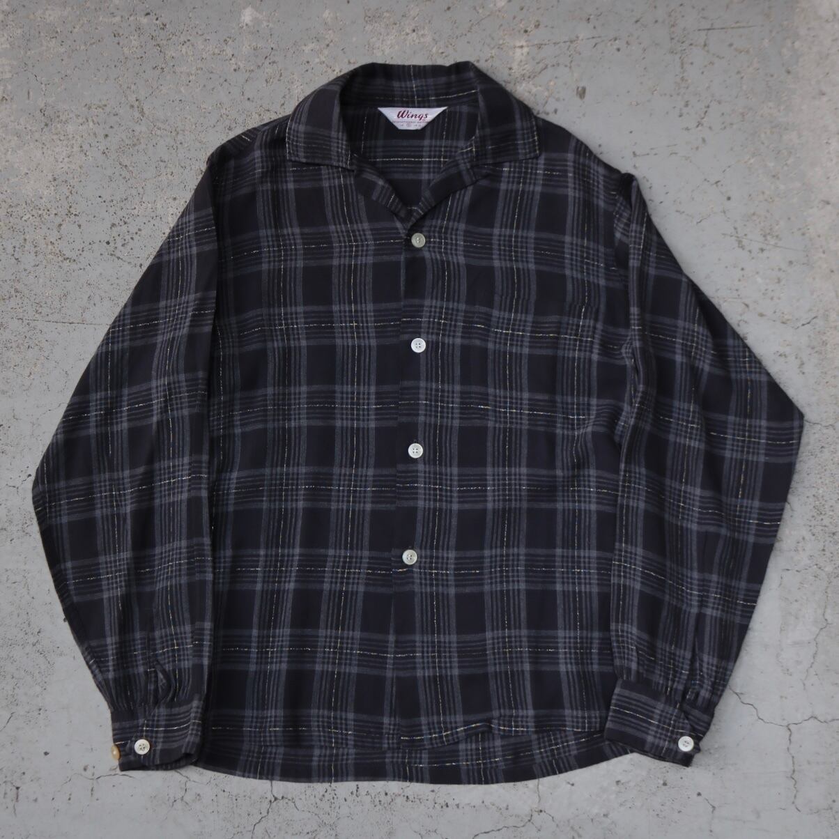 50's "Wings" cotton × rayon open collar shirt