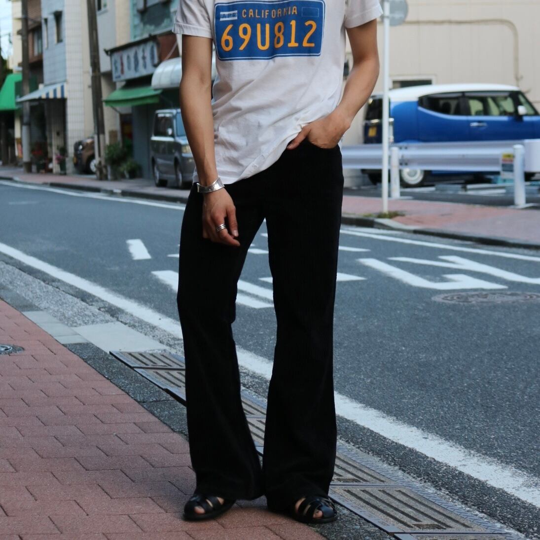 90's〜 "PURE JEANS CAROCHE" black corduroy flare pants