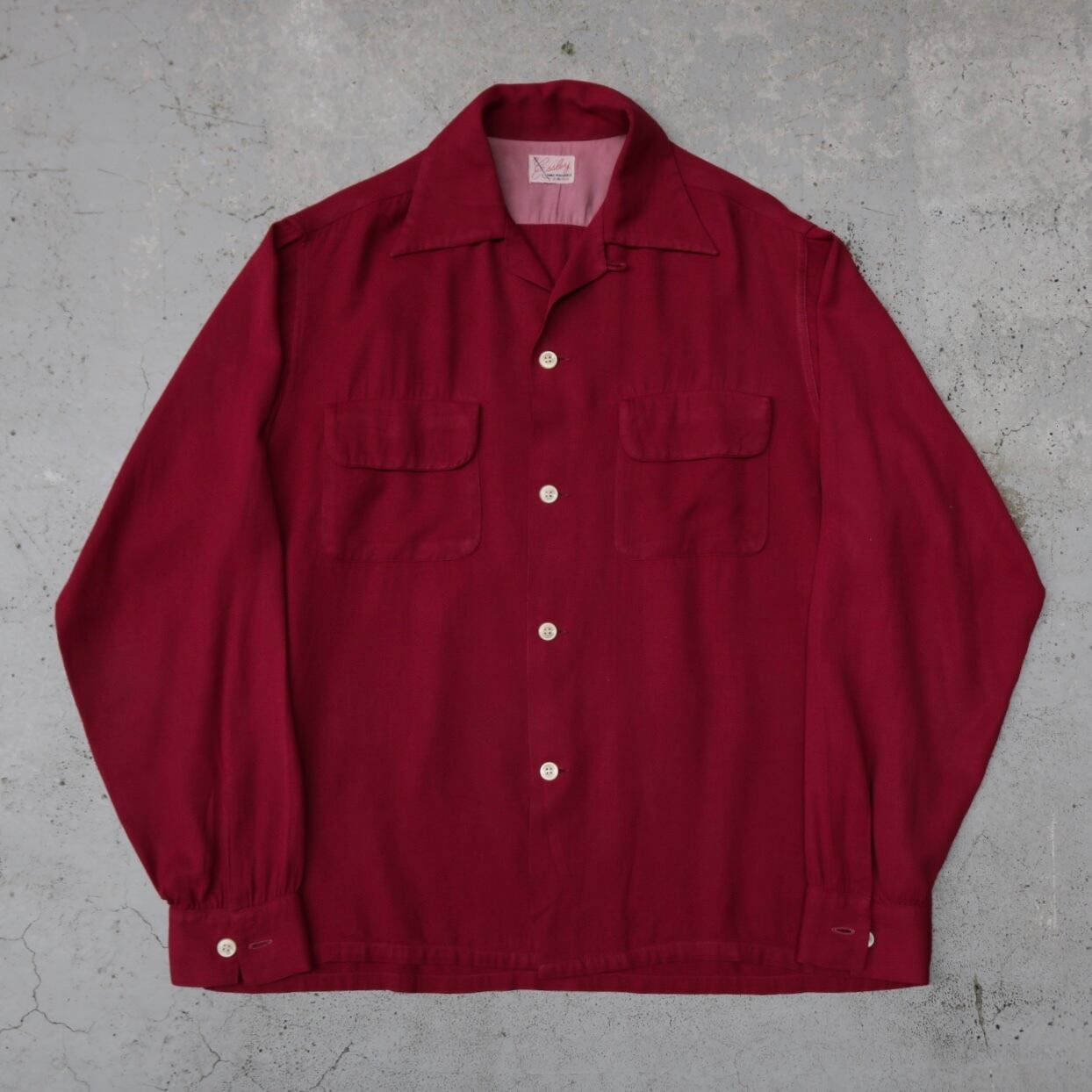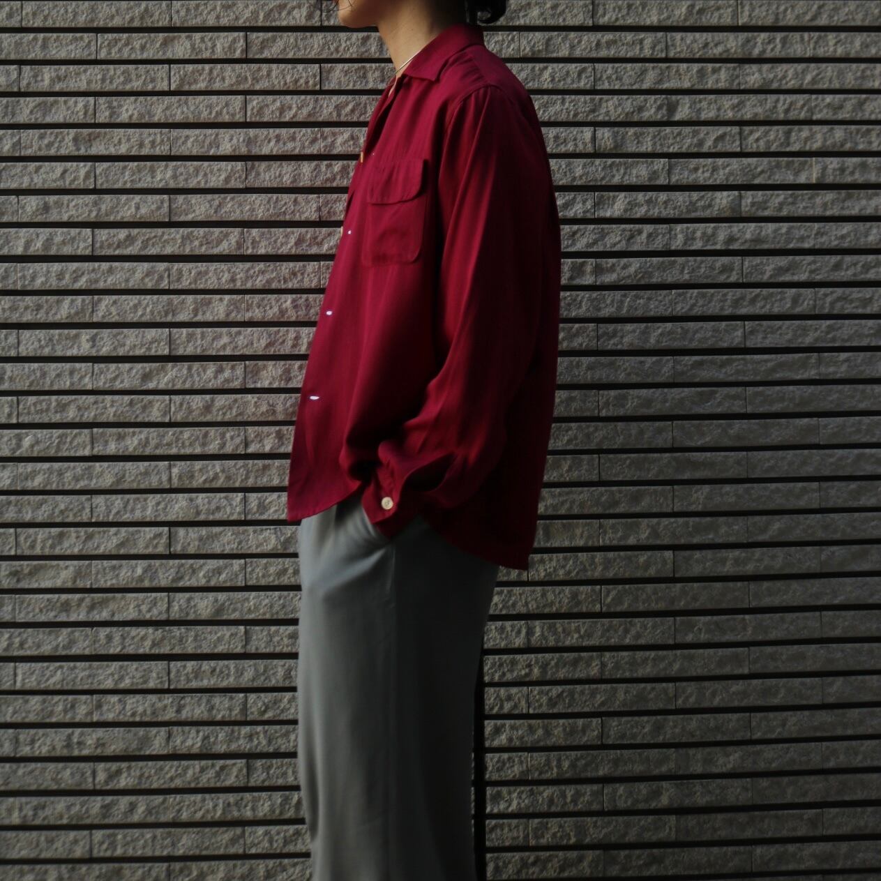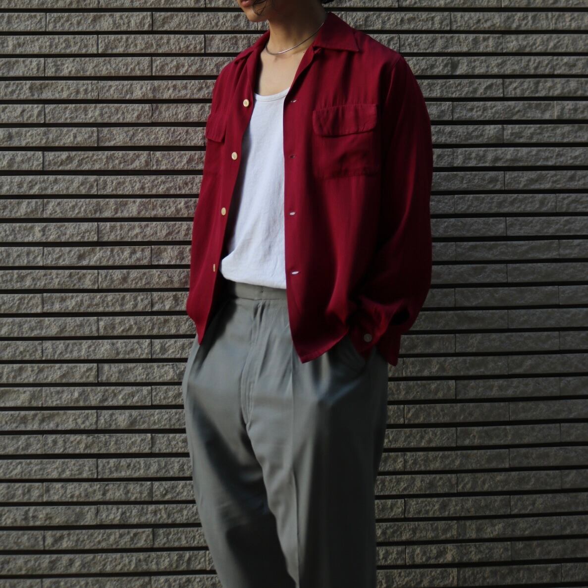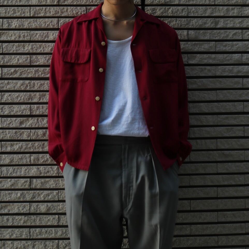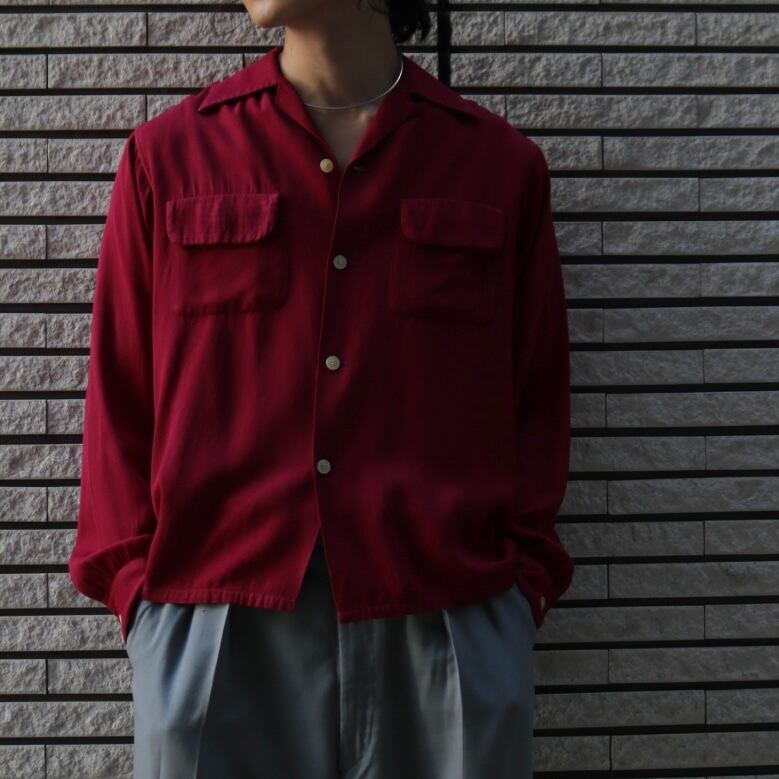 50's rayon gabadine open collor shirt